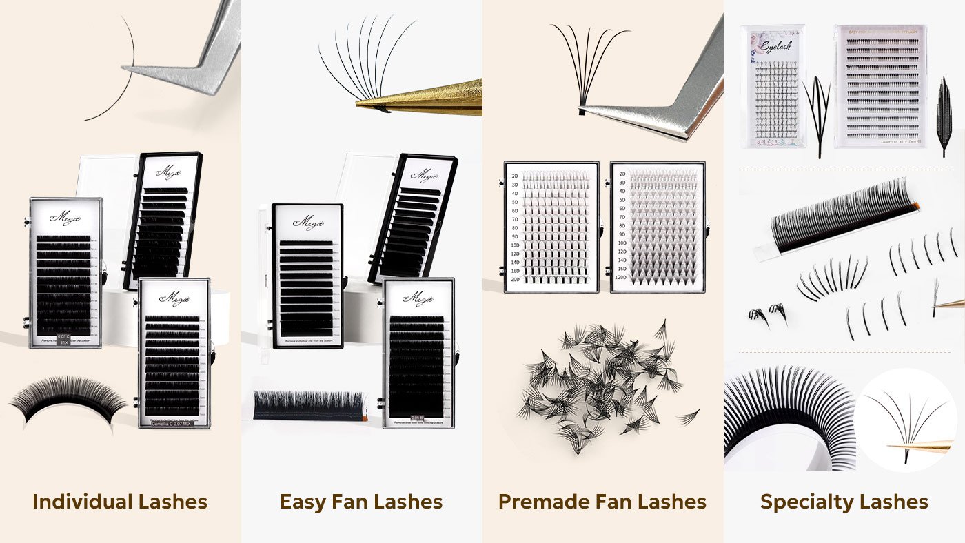 Different types of lash extensions are developed to match different skill levels, working speeds, and styling goals. There are several different types of lash trays available for eyelash extensions, each developed to match specific skill levels, working speeds, and styling goals. From traditional individual lash extensions to easy fan lashes, premade fan trays, and specialty styling designs, every category serves a distinct role in professional lash applications.